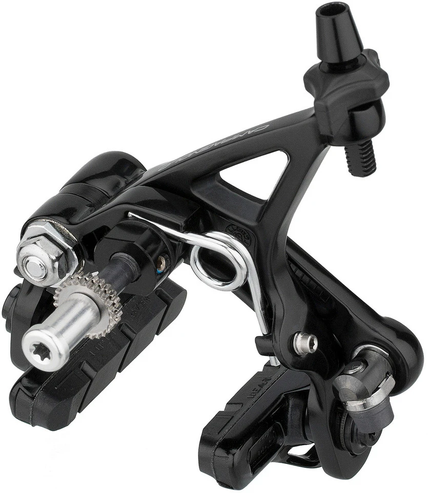 Spezifikationen:Serie:Super Record 12-fachEinsatzbereich:Road, Triathlon, CyclocrossAusführung:Doppelgelenk-SeitenzugbremseBefestigung:BremssockelTechnische Daten:Material:Aluminium, TitanBelag:spezielle Mischung für kürzeren Bremsweg bei jedem Wetter, weniger VerschleißBremsmedium:BremszugEinstellmöglichkeiten:Höhenverstellbarkeit:40-50 mm (von Bremsbolzen zu Bremsschuhbefestigung)Features:Kompatibilität mit 28 mm Reifen: die Struktur der Bremse ermöglicht die Montage von 28 mm Reifen sowohl auf Felgen der Klasse C17 als auch der Klasse C19Dual Pivot Bremsen auch an der Hinterradbremse bewirken eine stärkere Bremsleistung im Vergleich zur Mono-Pivot-Bremse, vor allem wenn sich die Bremsbeläge in der Nähe der Bremsfläche befindenBewegung der Hebel auf Lagern ermöglicht maximale Leichtläufigkeit und Haltbarkeit, auch nach Jahren der Benutzungaerodynamisches Design: der vordere Bremshebel ist geschlossen, um eine bessere aerodynamische Leistung zu erzielen und um sich den aerodynamischen Rahmen besser anzupassenBremsschuhträger mit dem exklusiven System zum Einsetzen und Entfernen der BremsschuheTechnologie:Dual Pivot
