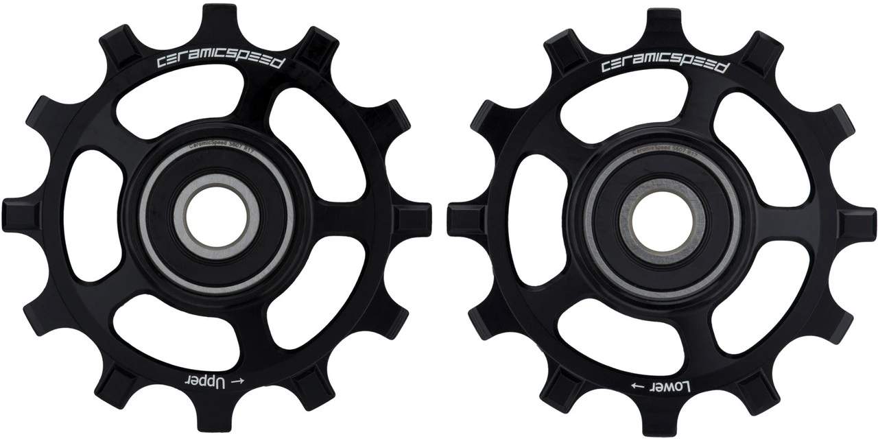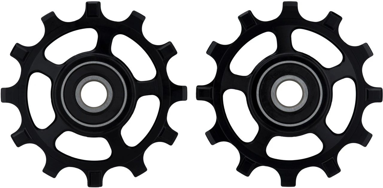 Die CeramicSpeed Schalträdchen für Shimano 11-fach haben 12 Zähne mit Narrow-Wide-Design gegen Kettenschlagen und verfügen über leicht laufende, belastbare Keramiklager.