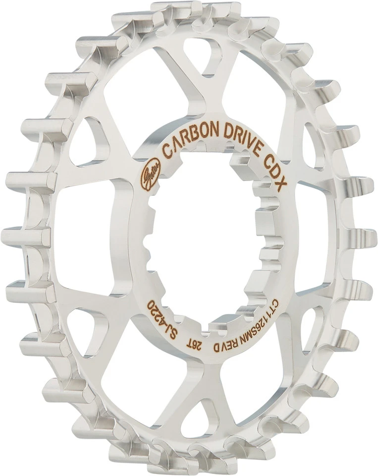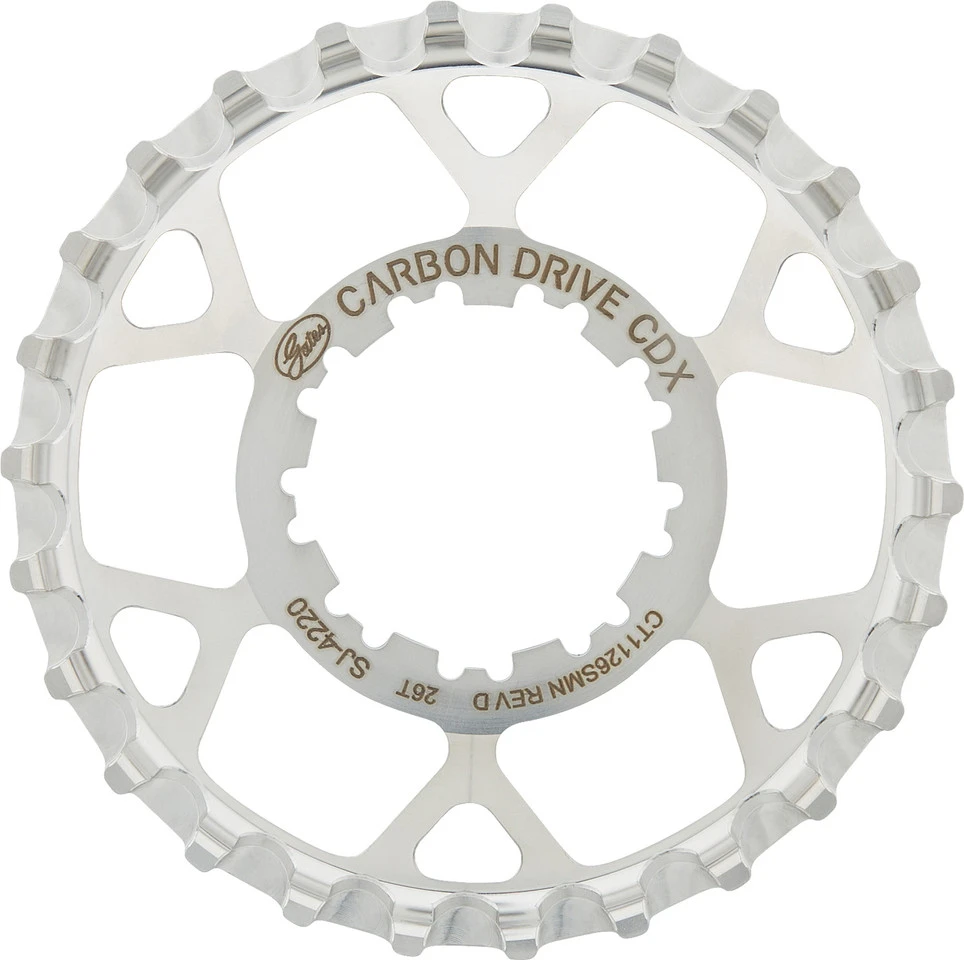 Spezifikationen:Einsatzbereich:All Mountain, Touring & TrekkingZähne:20 Z, 22 Z, 24 Z, 26 Z, 28 Z, 30 Z, 32 Z, 34 ZBefestigung:9-SplineTechnische Daten:Breite der Zähne:11 mmZahnteilung:11 mmDicke der Riemenscheibe an der Aufnahme:5,0 mmVersatz:0,5 mm (Montagefläche), 3,0 mm (Mittellinie)Material:EdelstahlKompatibilität:Shimano HG-Standard-Freilaufkörper mit neun Einkerbungen (Shimano MTB, Shimano Road)Features:CDX-Niveau: High-End Variante für hohe Belastungen und beste Performancegeeignet für Schlamm, Sand, Schnee und Eis sowie sämtliche Straßenmittlere Führungsnut (CenterTrack)hohe Laufleistungrobuster EdelstahlTechnologie:Gates Carbon Drive System
