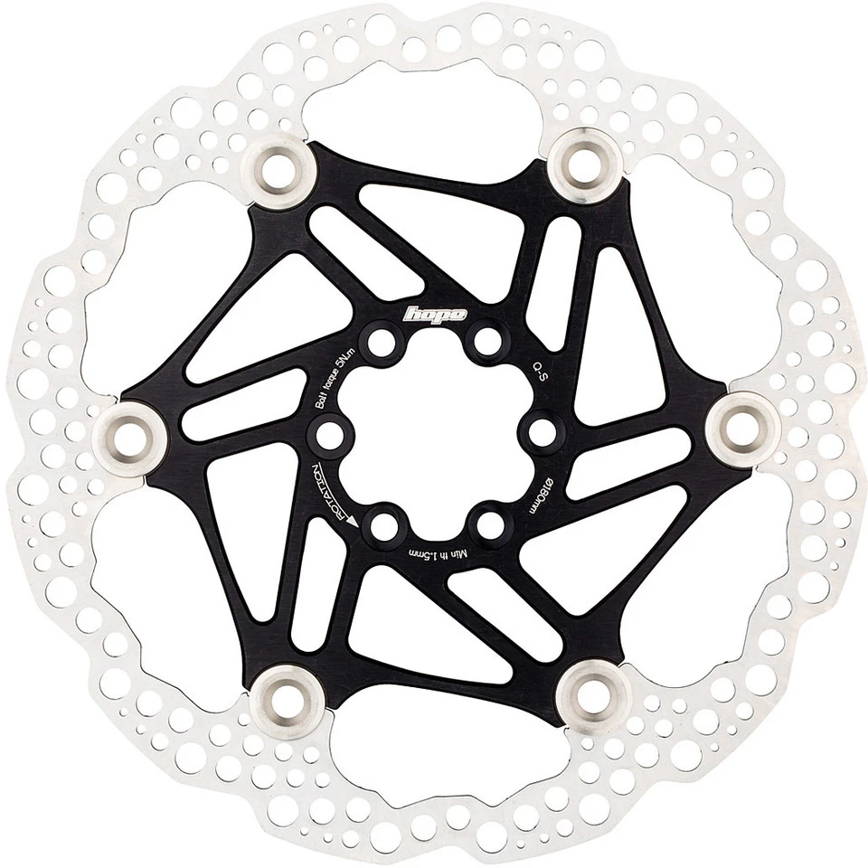 Technische Daten:Montage:6-LochDurchmesser:140 mm, 160 mm, 180 mm, 183 mm, 200 mm, 203 mm, 225 mmBauart:2-teilig, schwimmend gelagertMaterial Disc:EdelstahlMaterial Spider:AluminiumMaterial Schrauben:StahlFreigaben:Bremsenkompatibilität:Hope Scheibenbremsen außer V2, dank breiterer Bremsoberfläche auch passend für Bremsen anderer Hersteller*