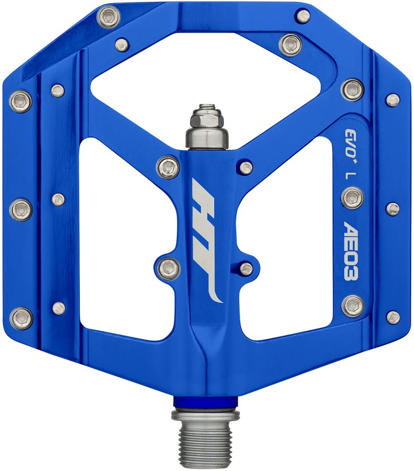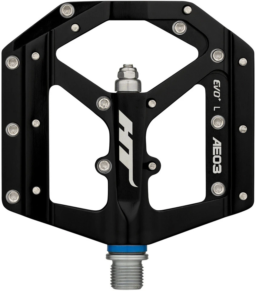 Spezifikationen:Einsatzbereich:DownhillAusführung:PlattformpedaleTechnische Daten:Material Pedalkörper:AluminiumMaterial Achse:Stahl (CrMo)Lagerung:EVO+ SystemBauhöhe:11 mmMaße [L x B]:102 x 96 mmAnzahl Pins:20Features:ultradünnKörper und Achse CNC-gefertigtIGUS Buchsenaustauschbare SAP-Pins (10 pro Seite)Herstellernummern:black:HT-AE-03-(001)red:HT-AE-03-(023)blue:HT-AE-03-(025)grey:HT-AE-03-(013)Lieferumfang:1 Paar Plattformpedale HT EVO AE03inkl. Pins