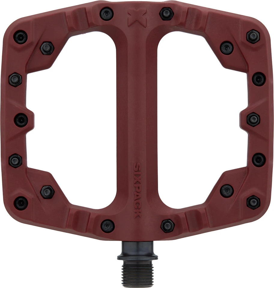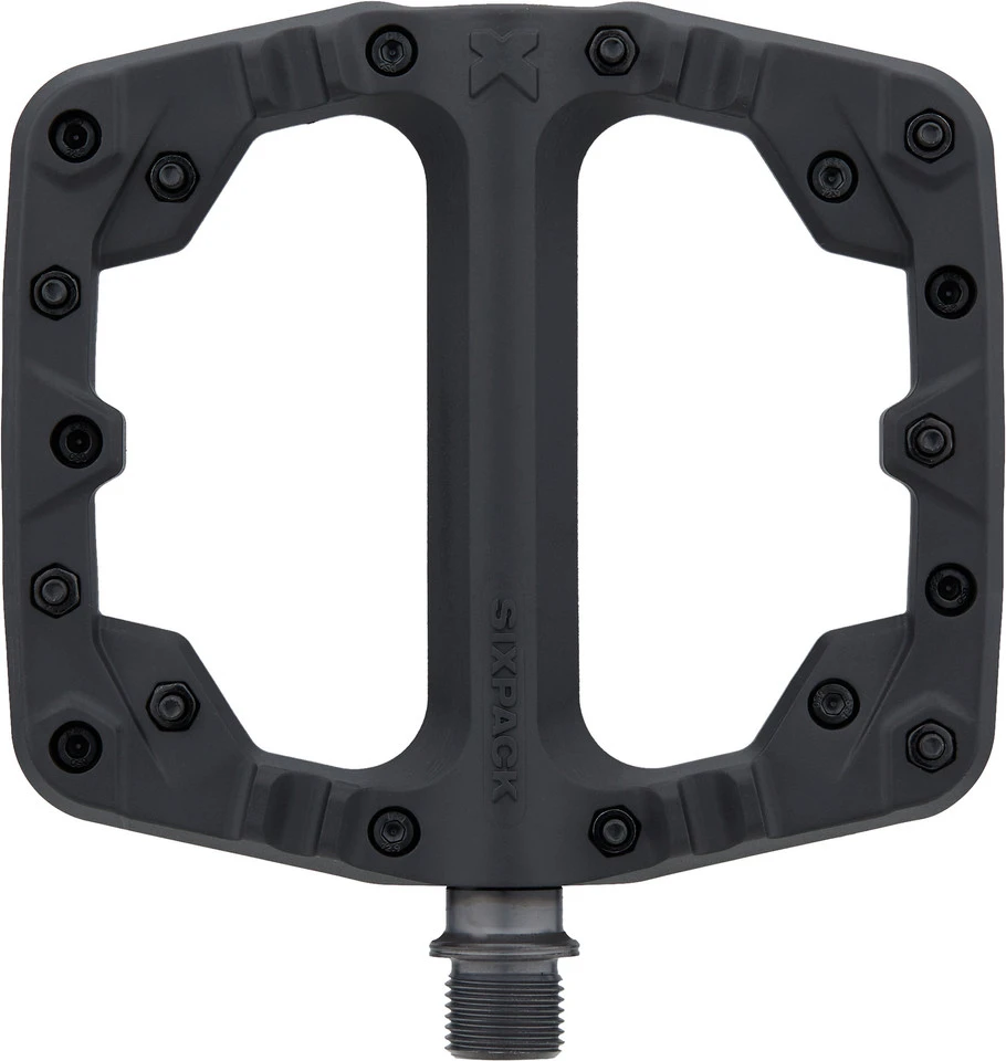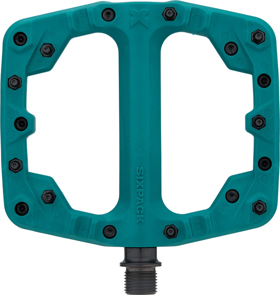 Die Sixpack Racing Kamikaze Plattformpedale aus glasfaserverstärktem Polyamid sind strapazierfähig und ihre langen Stahlpins sorgen auch auf schwierigsten Downhill-Strecken für zuverlässigen Halt.