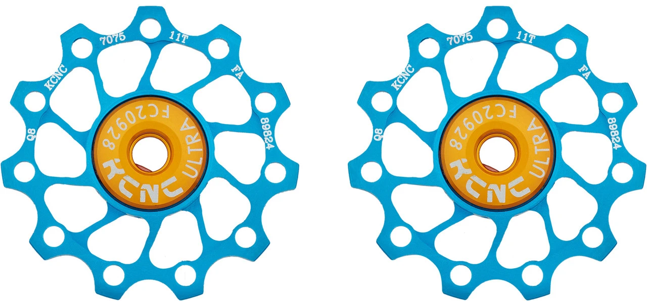 Die CNC-gefertigten Schalträden von KCNC eignen sich für die Campagnolo-, Shimano-, und SRAM-Modelle. Die Rädchen sind zudem sehr leicht und besitzen eine spezielle Beschichtung, welche sie besonders schmutzunempfindlich macht.