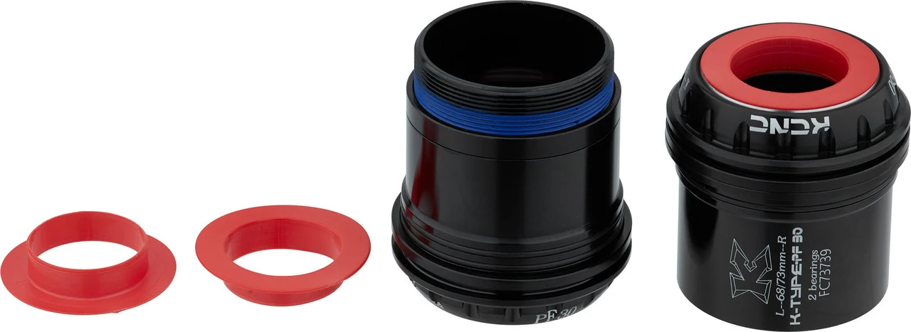 Technische Daten:Anwendungsbereich:MTB, RennradMaterial:AluminiumLagerung:Edelstahl-Industriellager, gedichtetEinbaubreite:68 mm und 73 mm TretlagergehäuseDurchmesser (Tretlagergehäuse):46 mmDurchmesser (Welle):25 mm, 24 mm (mit Adapter)Kompatibilität:KCNC (25 mm), Shimano Hollowtech II, Race Face X-Type, FSA MegaExo (24 mm)Sonstiges:Spacer für verschiedenen EinbaubreitenLieferumfang:1 x Lagerschale KCNC PF30 rechts1 x Lagerschale KCNC PF30 links2 x Lagerinkl. Spacer