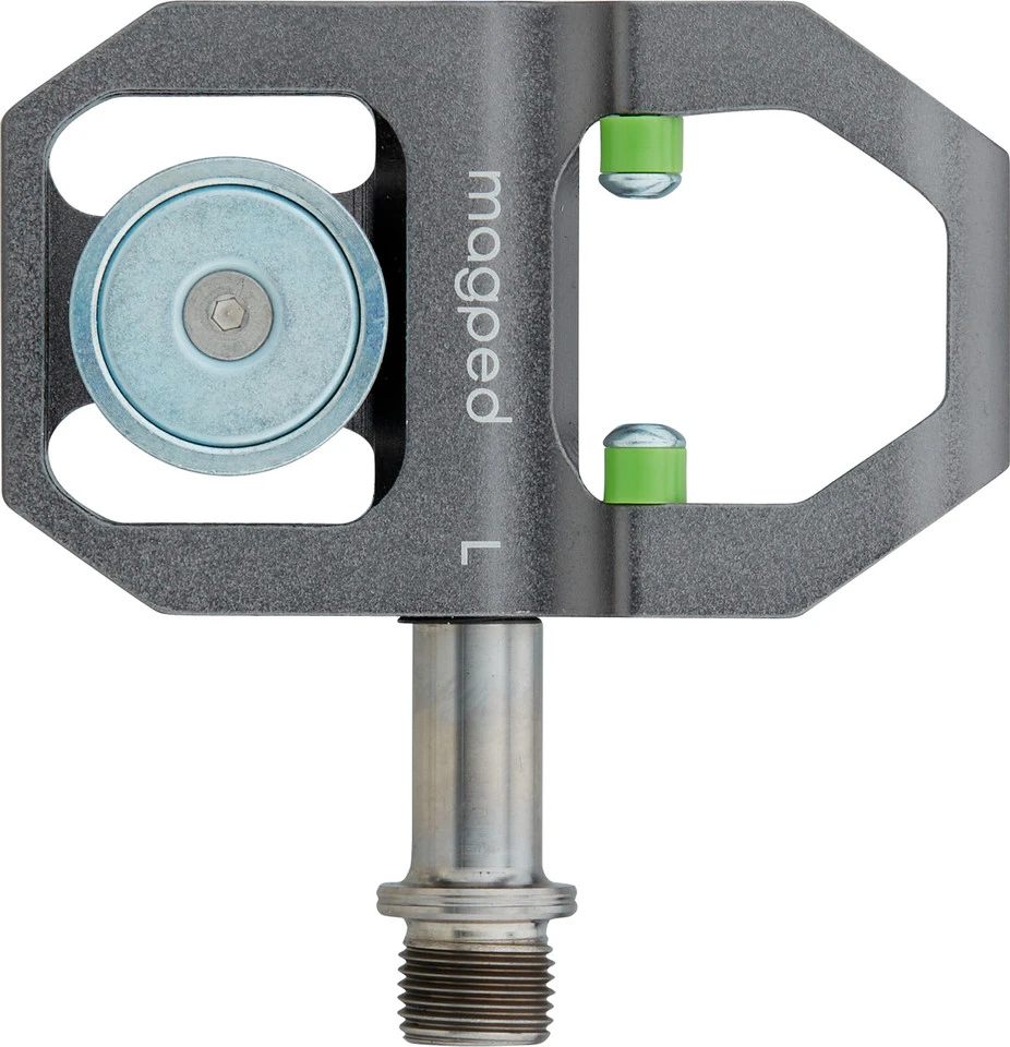 Spezifikationen:Einsatzbereich:RoadAusführung:MagnetpedalePedalsystem:magped RoadMontage Schuhplatte:3-LochTechnische Daten:Material Pedalkörper:AluminiumMaterial Achse:TitanAuslösekraft:200 NBauhöhe:18 mmMaße (L x B):89 mm x 54 mmempfohlene Schuhplatten:magped Schuhplatten Road MetallFeatures:magnetische Rennradpedale für sicheres und einfaches Ablösen Deiner Füßegeringeres Sturz- und Verletzungsrisiko gegenüber herkömmlichen Klickpedalennur 270 g Gewicht durch Titanachse und CNC-gefrästes Aluminiumgeringfügige Anpassung der Cleat-Position zur GelenkschonungMagnetstärke 200 N mit 20 kg Zugkraft, empfohlen ab 75 kg Körpergewichtdank ausbalancierter Magnetstärke, hohe Zugkraft bei einfacher Ablösbarkeitin der Funktion weniger durch Schmutz beeinträchtigt als gewöhnliche Schuhplattenhöhenverstellbare MagneteHerstellernummer:ROAD