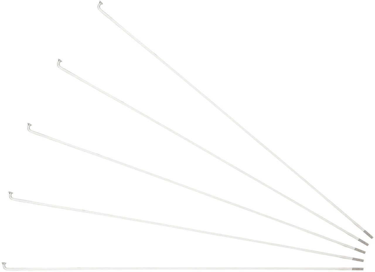 Technische Daten:Einsatzbereich:Road, Cross Country, All Mountain, Enduro, DownhillTyp:RundspeicheKopf:J-Bend (gebogen)Durchmesser:2,0 – 1,8 – 2,0 mmGewinde:2,0 mm / FG 2,3Länge:250 mm – 300 mm (in 2-mm-Schritten)Material:EdelstahlFeatures:geringe Elastizitätgute StoßabsorptionFestigkeit im Mittelteil gegenüber nicht konifizierten Speichen erhöht (1300 N/mm²)Sapim Cold Forging Technologie (SCFT System)Lieferumfang:5 x Speiche Sapim Race J-Bend5 x Messing-Nippel Sapim Polyax 12 mm, silbern