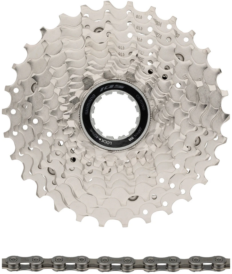 1 x Kurbelgarnitur Shimano 105 (FC-R7000)1 x Schaltwerk Shimano 105 (RD-R7000)1 x Umwerfer Shimano 105 (FD-R7000)1 Paar Schalt-/Bremsgriffe Shimano 105 STI 2-/11-fach (ST-R7000)1 Paar Felgenbremsen Shimano 105 Direktmontage (BR-R7010-F + BR-R7010-RS)1 x Kassette Shimano 105 (CS-R7000)1 x Kette Shimano 105 / SLX Quick-Link (CN-HG601-11)1 x Kurbelschraube Shimano1 x Außenhülle Shimano OT-RS900 240 mm1 x Endkappe verlängert für Schaltwerk1 x Schaltzug Shimano 1800 mm1 x Schaltzug Shimano 2100 mm2 x Bremszug2 x Bremszugaußenhülle3 x Schaltzugaußenhülle2 Paar Bremsbeläge R55C41 x Kassetten-Abschlussring Shimano Stahl1 x Kettenschloss Shimano SM-CN900-11 Quick-Link