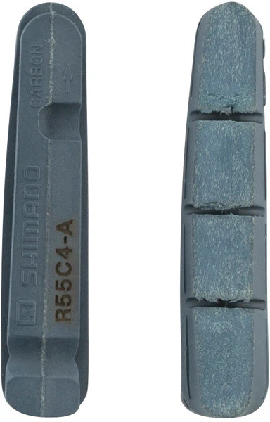 Die Shimano R55C4-A Bremsgummis haben einen 1 mm dünneren Belag als R55C4 und eignen sich daher nur für breite Carbonfelgen mit einem Durchmesser von 19 bis 28 mm. Sie sind mit aktuellen und älteren Dura-Ace, Ultegra, 105 Felgenbremsen (Standard- und Direktmontage), mit gruppenlosen und Cantilever-Bremsen kompatibel. Sowohl auf der Straße wie im Matsch halten R55C4 Bremsbeläge überdurchschnittlich lang.