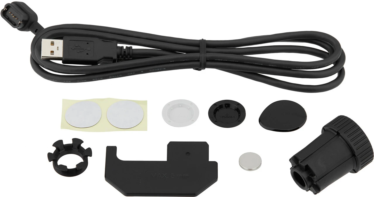 Der Lithium-Ionen-Akku befindet sich in der Steuereinheit am Kurbelstern und kann von Dir selbst leicht aufgeladen werden. Wenn er nach ca. 2,5 Stunden wieder ganz voll ist, hält er mindestens 300 Stunden lang. Das Ladekabel ist übrigens das gleiche wie für Deine Dura-Ace Di2-Schaltung. Auch die Firmware-Updates kannst Du über das E-Tube Project durchführen. Am Gehäuse der Steuereinheit findest Du eine LED, die Dir den Akkuladestand signalisiert, und eine Taste für eine problemlose Nullpunkt-Kalibrierung. Natürlich ist die ganze Konstruktion wasserdicht und es wird eine aktive Temperaturkompensation durchgeführt, sodass Du keine Bedenken bezüglich des Wetters haben musst. Den Magneten für die Trittfrequenzmessung kannst Du mithilfe des mitgelieferten Positionierwerkzeugs an der Kettenstrebe, dem Sitzrohr oder dem Unterrohr anbringen.