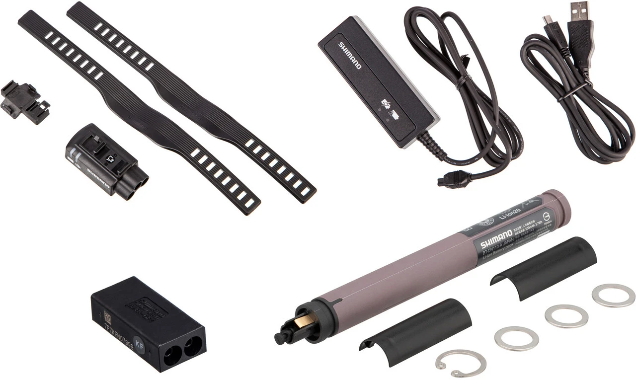 1 x Kurbelgarnitur Shimano GRX (FC-RX810-1)1 x Schaltwerk Shimano GRX Di2 (RD-RX815 oder RD-RX817)1 x Akku Shimano Di2 (BT-DN110)1 x Ladegerät Shimano Di2 (SM-BCR2)1 x Elektrischer Verteiler Shimano (EW-RS910 intern oder SM-EW90-A extern)1 x Verteilerdose Shimano SM-JC41 intern1