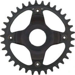 Das Shimano STEPS Kettenblatt SM-CRE80-12-B für E-Mountainbikes mit 12-fach-Schaltung und 53 mm Kettenlinie eignet sich für FC-E8000, FC-E8050, FC-M8050 und andere E-Bike-Kurbeln. Es wird über einen Lockring, welcher zur Motoreinheit gehört, auf der Achse befestigt. Dank eines speziellen Zahnprofils namens Dynamic Chain Engagement+ kannst Du Dir des Kettenrückhalts auch auf ruppigem Terrain sicher sein. Zugleich unterstützt diese Technologie Dich beim gleichmäßigen Pedalieren. Das Kettenblatt hat einen 4-Arm-Lochkreisdurchmesser von 104 mm und besteht aus Stahl. Der bereits montierte Spider, der für die Kettenlinie von 53 mm sorgt, ist aus Aluminium gefertigt.