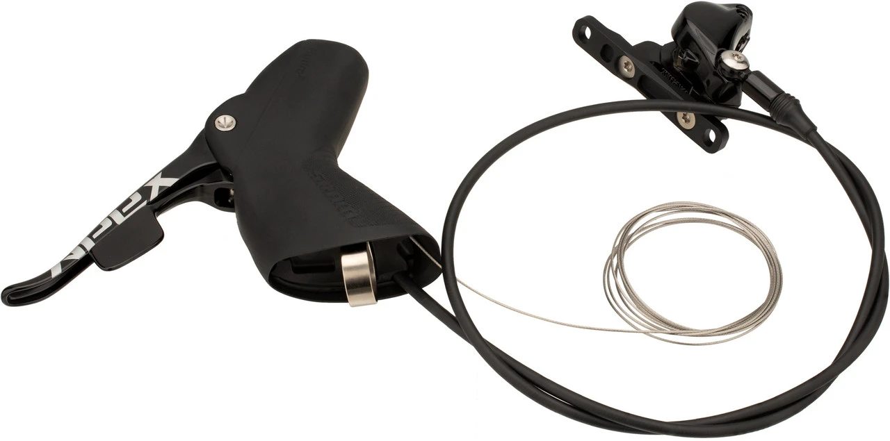 Lieferumfang:1 x Scheibenbremse SRAM Apex 1 HRD FM1 x Bremsgriff SRAM mit Dropper Actuator1 x Bremsleitung SRAM 950 mm1 Paar Bremsbeläge SRAM organisch1 x Bremsscheibenadapter SRAM2 x Befestigungsschraube SRAM1 x Olive SRAM1 x Insertpin SRAM1 x Transportsicherung SRAM1 x Entlüftungsblock SRAM Bleed BlockDirekt mitbestellen:SRAM Centerline Rounded 6-Loch Bremsscheibe 1-teilig