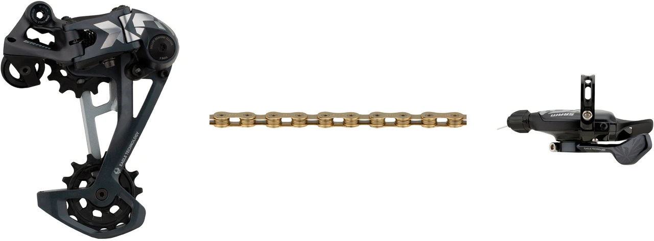 Spezifikationen:Serie:X01 EagleEinsatzbereich:All Mountain, EnduroSchaltung:12-fach (mechanisch)Technische Daten Schaltwerk:Befestigung:StandardZähne Kassette max.:52 ZähneKompatibilität:SRAM MTB 12-fachSchalträdchen:14 ZähneMaterial äußerer Käfig:AluminiumMaterial innerer Käfig:AluminiumTechnische Daten Schaltgriff:Montage:Klemmschelle (geschlossen), MatchmakerTyp:TriggerMaterial Gehäuse:Aluminium, KunststoffMaterial Hebel:AluminiumSchellendurchmesser:22,2 mmEinstelloptionen:DaumenhebelpositionTechnische Daten Kette:Gliederzahl:126Verschlussart:PowerLock™Nietentyp:hohl (Hollow Pins)Laufrichtungsgebunden:Nein (Kette), Ja (Kettenschloss)Material:StahlFarbinfo:Die Farbauswahl bezeichnet Serie und Farbe der Kette.