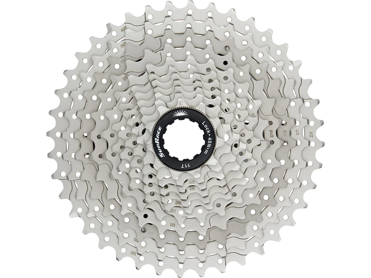 Typenbezeichnung:EAXAbstufung:11-13-15-17-19-21-24-28-32-36-40 ZHerstellernummern:CSMS8 EAX-BOX B (ed black), CSMS8 EAX-BOX M (metallic silver)Lieferumfang:1 x Kassette SunRace CSMS81 x Lockring Stahl