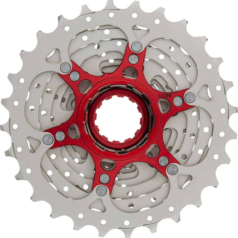 Spezifikationen:Einsatzbereich:RoadSchaltstufen:10-fachAbstufung:11-28Material Ritzel:Stahl (Hi-Tensile)Freilaufkompatibilität:Shimano MTBHinweis:mit 1,85-mm-Distanzring kompatibel zu Shimano Road 11-/12-fachTechnische Daten:Serie:RX 10sSpider / Ritzelträger:1 (Aluminium)Features:Super-Fluid-Drive-Technologie für schnelles SchaltenLight-Weight-Holes-Design3 Ritzel auf 1 Spider (rot eloxiert)Spacer aus Aluminium (rot eloxiert)Verschlussring rot eloxiertAusführungen:11-28: