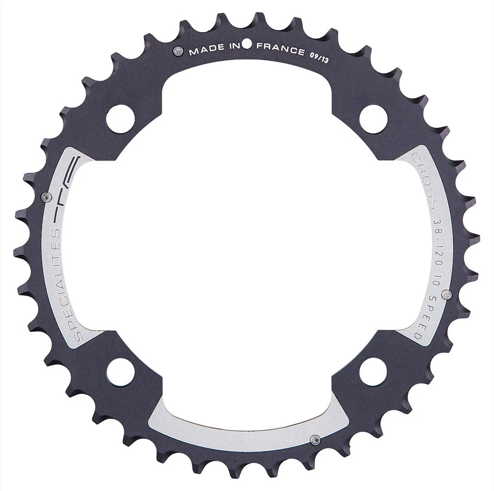 Spezifikationen:Einsatzbereich:Cross Country, All Mountain, EnduroBefestigung:120 mm Lochkreis, 4-ArmZähne:38 Z, 42 Z, 44 ZSchaltstufen:2×10-fachTechnische Daten:Material:Aluminium (7075-T6)Kompatibilität:SRAM XX Kurbel 2010SRAM XX, X0, X9 und X7 Kurbel 2011/2012Cannondale Si und SL Kurbel 2008 bis 2014Position: außenFeatures:Gewindelöcher, keine Muttern erforderlichdesignt und hergestellt in Frankreich