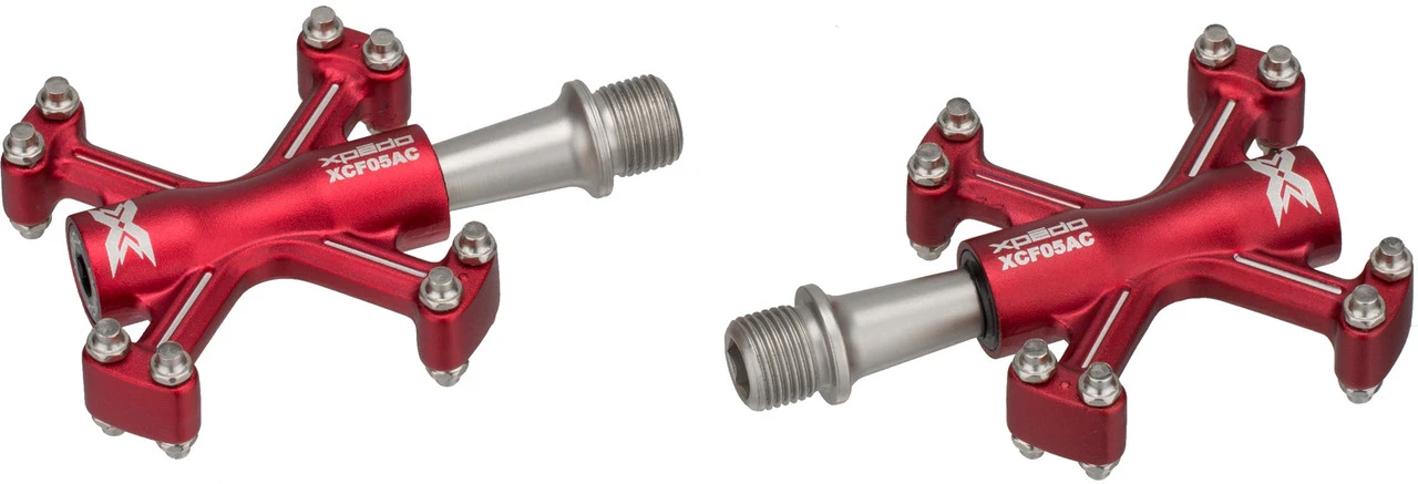 Spezifikationen:Einsatzbereich:MTB, FreerideAusführung:PlattformpedaleTechnische Daten:Material Pedalkörper:Aluminium 6061Material Achse:CrMoGröße:62,8 x 62,8 x 17,6 mmGewinde:9/16“Lagerung:Cartridge 3-fach, gedichtetPins:8 pro Seite, austauschbarHerstellernummern:schwarz:XCF05AC blackrot:XCF05AC redLieferumfang:1 Paar Plattformpedale Xpedo Traverse 5